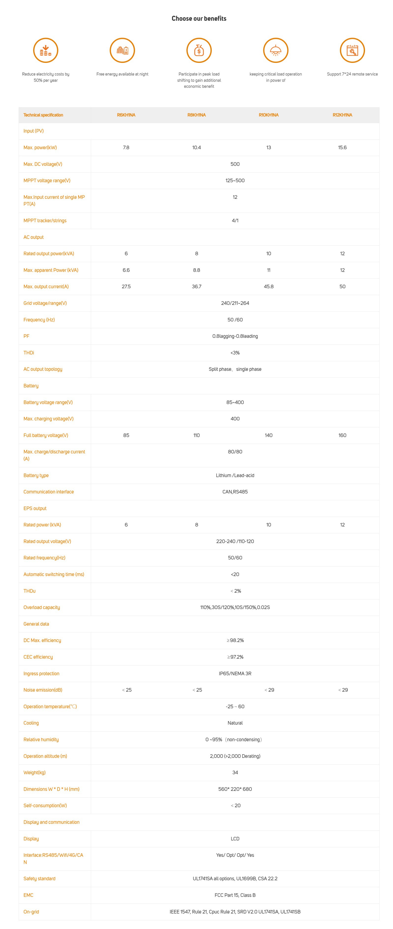 Passed UL 1741:2021, IEEE 1547.1, UL1699B test certification; ①With over-voltage, over-current, over-temperature protection, compatible with anti-zero export function;