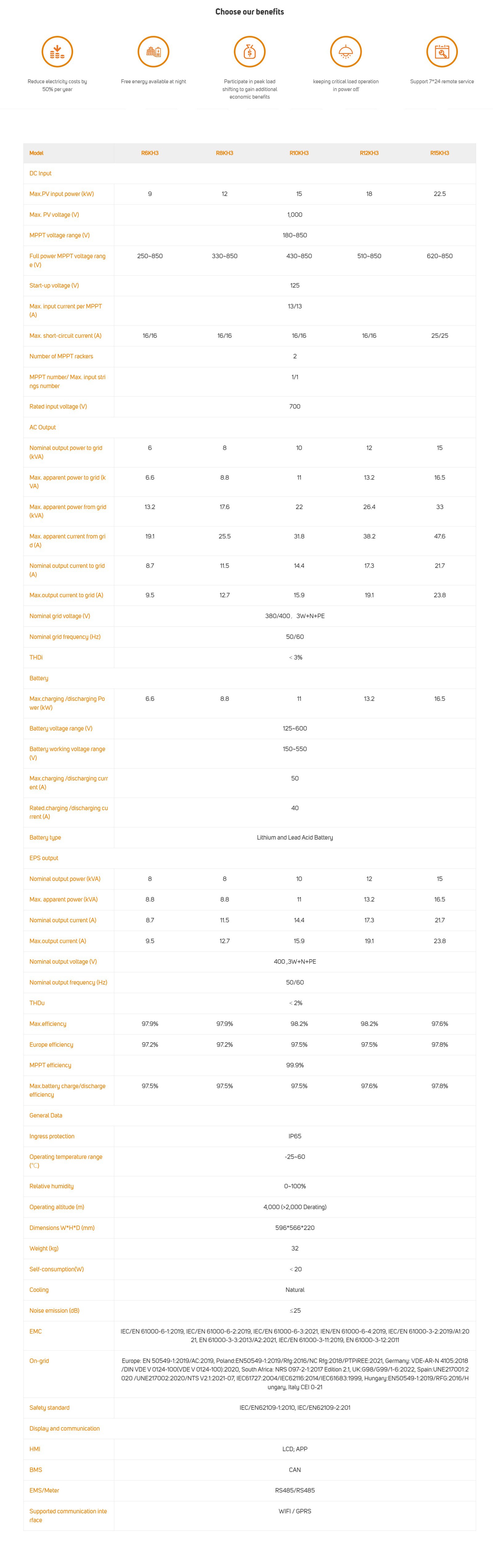 Passed IEC/EN 62109-1/-2, IEC/EN 62477-1, IEC/EN 61000-6-1/-6-3, European grid connection: EN50549-1, German grid connection: VDE4105/0124 , UK grid connection: G99, South Africa: NRS097-2-1:2017 test certification;